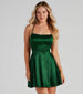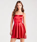 Have a twirl-worthy moment in this gorgeous and glam satin skater dress. It features a sleeveless square neckline. adjustable spaghetti straps that lead to a cross-back and lace-up back design. a fitted bodice with a high waist. and a flirty skater silhouette. Style this dress with rhinestone earrings and new heels.