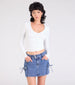 This cargo denim skirt is the perfect addition to your weekly lineup. The mid-rise waist and bodycon fit accentuate your curves. while the cargo side string pockets add a touch of functionality.