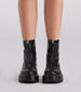 Add some stylish edge to your everyday look with these trendy platform booties. They feature an above-the-ankle fit. a round toe. a front zip-up design. and a tall platform. Pair these faux leather booties with a corset top and your fave pair of denim.