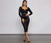 Make a dramatic entrance in our stunning Addison midi dress! She features long fitted sleeves. a wired notch front V neckline. a high waist. and a mid-length. curve-hugging silhouette with a sultry back slit. Pair this dress with a rhinestone choker necklace for a glam factor.