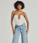 Adorable Glam Rhinestone Bow Cutout Corset Top