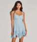 This sleeveless lace mini dress features a dainty lace trim square neckline and tank shoulder straps. a form-hugging bodice. and a romantic ruffled hem with an A-line silhouette. Perfect for parties. brunch. or prom!