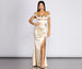 Cut to hug every curve. our irresistible Ali gown will leave you looking radiant. She features an off-the-shoulder neckline with pleat-detailed micro sleeves. a seamed sweetheart bodice with wire boning and lace-up back. and a slinky. form-fitting skirt with gather detail at back zip and a high side slit. Ali is made from a smooth. shiny woven material with moderate stretch.