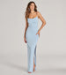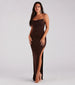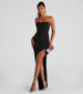 Sultry and stunning. the Alisha formal dress will keep all eyes on you. With thin rhinestone detailed straps that give effortless sparkle and a curve-hugging silhouette. and an alluring high slit.