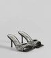 Glam up your dressy style in these satin stiletto heels boasting an on-trend square toe with a gorgeous rhinestone embellished strap. a short stiletto heel. and a cushioned footbed for comfort. Complete the look with a clutch.