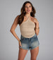This summer. it's all about breezy lightweight fabrics like this trendy crochet halter top. It features a tie-back halter neckline and cropped. curved hanky hem perfect for pairing with denim shorts.