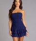Built to bring the drama. this strapless mini dress is all about the flirt. With a strapless ruched bodice and ruffle A-line silhouette. it's your go-to for dancing. date nights. and double takes.