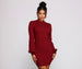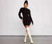 Get dolled up in a dress that is oh so stylish! Perf for date night. the dress features a mock neck. long Dolman sleeves. and a mini length silhouette. The dress is composed of a ribbed knit fabric that offers a form hugging fit with a moderate stretch. Complete look with thigh-high boots and hoops.