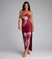 All eyes on the floral. This strapless maxi dress turns up the heat with a bold bloom moment and a high side slit that knows how to make an entrance at parties and on vacay!