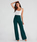 These crepe trouser pants have all the class your outfit needs for office hours to happy hour! They feature a high-rise waist with faux button accents. a wide-leg silhouette. and a pull-on/off styling. Complete the look in a blazer and heels.