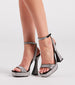 These glitzy rhinestone heels have all the right curves in all the right places! Dress up your night in these must-have heels featuring a square toe with a wide strap. a platform sole. an hourglass thin-shaped block heel. and an ankle strap with buckle closure. Complete the look with a glam choker necklace for a special occasion!