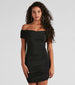 Create an alluring and chic look in this gorgeous mini dress. It features an off-the-shoulder neckline with a cross-over design. short fitted sleeves. and a mini-length. curve-hugging silhouette. The smooth knit fabric provides plenty of stretch for comfortable wear. Complete the outfit with statement earrings and a sleek clutch.