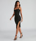 This alluring basic midi dress will easily become one of your staple styles. It features a sleeveless sweetheart neckline with a built-in padded bust. adjustable spaghetti straps for a customized fit. a midi-length bodycon silhouette. and a high side slit. Pair with a moto jacket and mules.