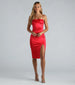 Blossom this season in this satin midi dress to refresh your dressy look! It features a sweetheart neckline with lovely mesh rosette appliques. spaghetti straps. a form-hugging silhouette. and a flirty front slit along the midi-length hem. Complete the look with a clutch and earrings for a rehearsal dinner or banquet!