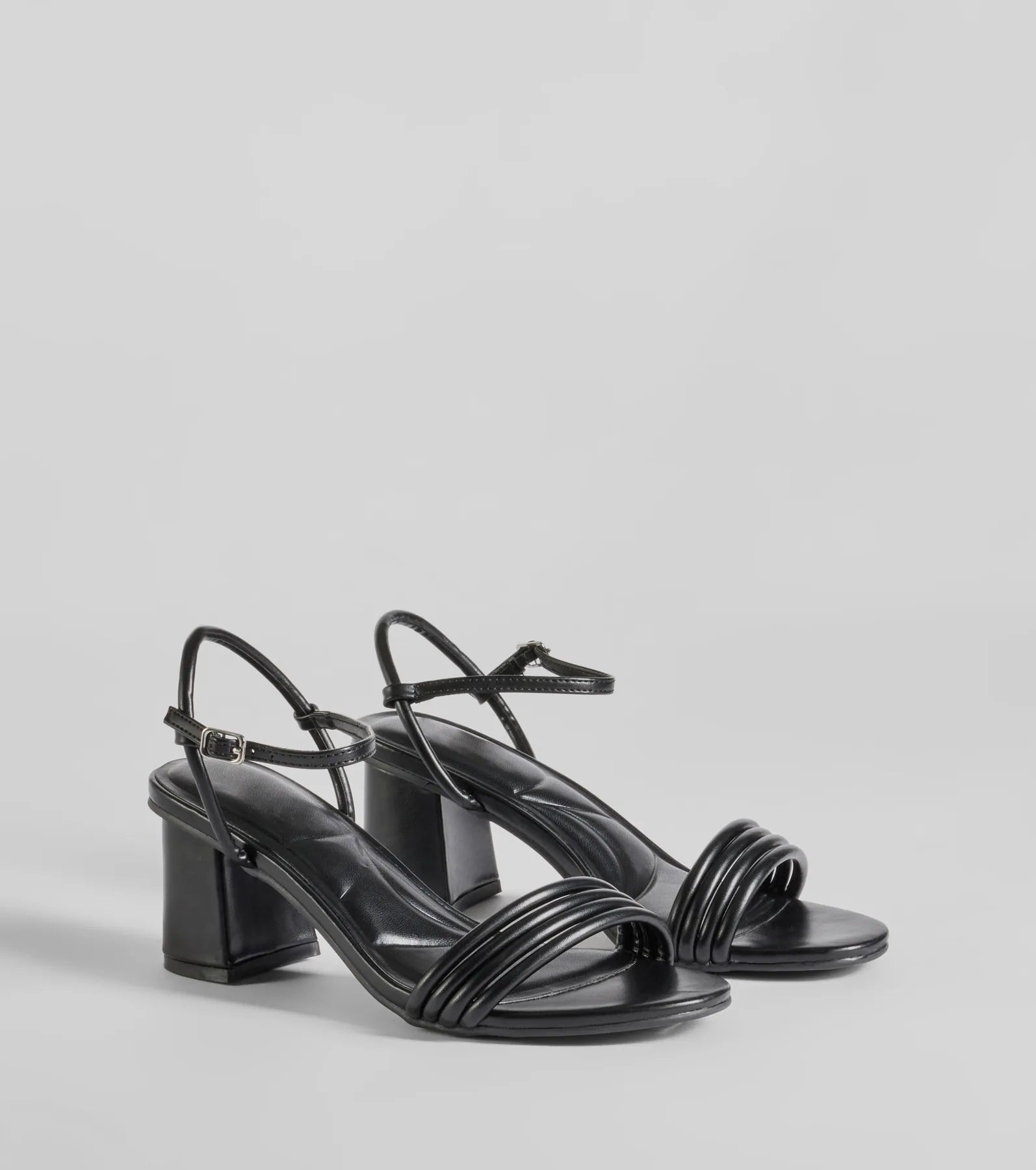 Classic and cute. these faux leather heels feature an almond toe with strappy toe straps. block heels. and an adjustable ankle strap with buckle closure. Style with a purse for any occasion.