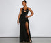 Strike a pose in a formal dress that leads the way! The dress features a sleeveless V-neckline with a notched accent. satin bodice. a cutout at the midriff. spaghetti straps that cross at the back. and a high side slit. The dress is composed of a crepe fabric that offers a form hugging fit with a moderate stretch. Complete look with a rhinestone bracelet.