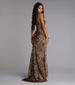 Designed to turn heads. the Angelina satin mermaid dress hugs every curve in a bold leopard print with a sultry open back. The sleek cowl neckline and fluid floor-sweeping silhouette bring a touch of effortless allure to your luxe night out.