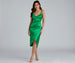 The chic Angelina sleeveless midi dress is the perf option to look sleek and stylish for cocktail parties or semi-formal weddings. She features an on-trend cowl neckline. spaghetti straps. a high waist seam to elongate your silhouette. a wrap-front skirt with ruched detailing. and a mid-length. form-hugging fit. Complete the look with strappy stilettos.