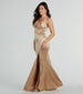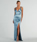 Glisten with glamour in the gorgeous Annalise glitter satin corset mermaid dress at your next black-tie affair! Crafted with a sleek satin fabric with a luxe glitter sheen. this long formal dress will capture all the compliments. She is designed with a sleeveless sweetheart neckline with pleating at the bust. and flexible boning at the bustier bodice for a snatched look. Her thin tank shoulder straps lead to a back zipper closure for effortless styling. Her mermaid silhouette will flaunt your stunning curves on the floor-sweeping hem. accented with a high front slit. Complete your look with metallic heels.