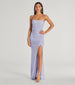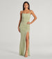 Enchant with your glamorous aura in the Annika formal mermaid dress crafted with airy lined mesh fabric embellished with dainty tonal faux pearls and mini rhinestones. It features a sleeveless square neckline. adjustable spaghetti straps. ruching to accentuate your gorgeous curves. and a floor-length mermaid silhouette with a high front slit to showcase your stiletto heels.