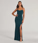 Both feminine and sweet. the Ashley sleeveless bow mermaid formal dress will have you feeling like a princess! The back bow tie design and ruched seam create a flattering mermaid silhouette while the high slit gives effortless allure.