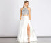 With a high neck and crop hem. sparkling iridescent sequins shine off Atara's fitted top. Her glossy satin skirt reveals a flattering front slit. allowing comfortable movement for the dance floor. Get dolled up by accessorizing her with some complimentary shine!Â