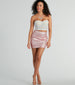 This fabulous metallic mini skirt will make you the center of attention all night long! Designed with a coated faux leather fabric with a trendy metallic sheen. this skirt features a high waist. a back zipper closure for effortless styling. and a mini-length hem with a bodycon silhouette to flaunt your curves. Complete your trendy 'fit with a corset top and stilettos for the club.