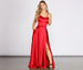 Sashay into the room with confidence as you captivate in our Aurelia dress! She features a rich red color. a scoop neckline. padded cups and narrow straps that lead to lattice back. Her empire waist accent leads to a floor length silhouette accented with a high slit. Dress is composed of a lined satin-like fabric that offers a form hugging fit with minimal stretch. Includes a back zipper closure.