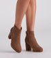 Breezy and perfect. step into autumn in these chic faux suede booties featuring a square toe. side zipper closure. block heel. and fit above the ankle. Complete the look in a plaid trench coat.