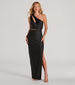The sleek and flattering presence of the Avery one-shoulder formal dress will make you feel your absolute best at weddings. banquets. and red-carpet events! Made from smooth knit fabric with lining. this dress is perfect for any occasion. The one-shoulder neckline and cutout bodice bring a touch of sophistication. while the slim silhouette and high side slit provide a flattering fit. to the long-length hem. Complete the look with high heels.