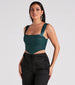 Everyone will be awestruck by your shine in this satin bustier featuring a sleeveless sweetheart neck. wide shoulder straps. underwire bust. glitter mesh overlay. flexible boning. and a curved crop hem. Style with a midi skirt for date night!
