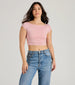 Make heads turn in this cute crop top all season! Designed with short sleeves and a crew neckline. this top offers a flattering fit while keeping you stylish with a low back with strappy detail. Complete the look in denim shorts and sneakers.