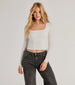 Step up your style game with this cropped long sleeve top. Featuring a stretchy knit. square neckline. and cropped hem. this top is your go-to for effortless chic vibes.