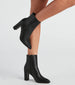 A basic bootie is all you need to create chic layered outfits this season! The booties feature an ankle-high length. a pointed toe. and a sturdy block heel. The bootie is composed of a smooth faux leather material. Complete your look with a ribbed sweater.