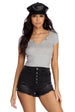 Bring it back to basics to create an effortlessly chic look! This must have top features a black hue. a V neckline. short sleeves and a cropped hemline. Top is composed of a smooth ribbed knit fabric that offers a form hugging fit with a moderate stretch.Â