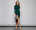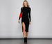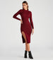Channel effortless style while looking chic in a knit dress! The dress features a mock neck. long sleeves. an asymmetrical high side slit. and a midi-length silhouette. The dress is composed of a knit fabric that offers a form-hugging fit with a moderate stretch. Complete the look with ankle booties and a moto jacket.