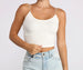 A basic ribbed tank is a closet essential for sure to go with so many different outfits. Whether you're having a date night or need to run errands. a basic top is a must. The top features a flattering scoop neck and bungee straps for a sexy detail. Complete your look with high waist cut off shorts and a pair of slides.