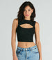 This crop top is basically the one you'll be obsessed with all summer! Crafted from stretchy ribbed knit fabric. this sassy top features a crew neckline and a flirty cutout bust leading to the cropped hem that flaunts your figure. Complete the look in new jeans.