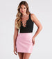 An elevated basic tank top that will make you shine! Standout in this crop top featuring a sleeveless square neckline. a cutout front with rhinestone embellished straps. and a fitted hem on stretchy rib knit fabric. Style with a fab mini skirt for dinner and drinks!