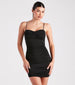 Show your sweet side for date night in this mini dress featuring a sleeveless. sweetheart neck. spaghetti straps. a lightly padded bust. side ruching. and a bodycon silhouette on lined knit fabric that fits your body like a glove. Complete the look in a chic ring set and heels.