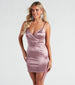 You'll be at the center of the dance floor all night long in this stunning satin dress! It features a sleeveless V-neckline with a wrap-front design. adjustable spaghetti straps for a customized fit. a high waist seam. and a short. curve-hugging silhouette with a side slit with gorgeous fringe beading. Style with clear heels.