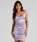 Bring the sultry vibes to your next party in our stunning Becca satin mini dress! She features a sleeveless. spaghetti strap bodice with a cowl neckline that creates a curvy appearance that leads to a strappy lace-up back with a tie closure so you can adjust the fit. sexy ruched detailing. and a mini length on her curve-hugging silhouette. Pair this dress with sleek hoop earrings and a chic clutch.