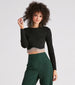 Make every room shimmer when you're wearing this rhinestone fringe top featuring long fitted sleeves. a crew neckline. and a cropped hem. The sweater knit fabric offers a moderate stretch. Complete the look in faux leather pants for a celebration!