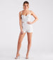 Create a flashy 'fit that will be party-ready with these rhinestone cheeky hot shorts! They feature a high-rise waist with a back zipper closure. all-over mini rhinestone studded embellishments. and a cheeky. form-hugging fit. The woven fabric includes a sewn-in knit lining and has minimal stretch. Style with a cropped bustier and metallic heels!