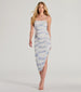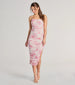 Watch your style blossom in this mesh floral midi dress perfect for dates to Galentine's and parties! This bodycon midi dress features a flattering square neckline. adjustable spaghetti straps. and ruched side seams for a perfect fit. The midi-length hem and bold floral print on a lightweight mesh fabric add a touch of fresh charm. Complete the look with dainty jewelry and strappy heels.