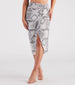 Bring that trendy bohemian style to your summer look with this lightweight woven midi skirt. It features a high-rise fitted waist. a side knot detail leading to a wrap-front design. a midi-length. flowy fit. and an all-over boho-inspired multi-print pattern. Complete the outfit with a neutral bodysuit.