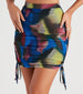 This fab high-rise midi skirt will put you in a bold style mood! It features an elastic band at the waist. ruched detailing down the side seams with adjustable drawstrings at the hem. a midi-length. curve-hugging fit. and an all-over multi-colored abstract print that will catch everyone's eye. The lined mesh fabric offers a moderate stretch. Pair with the matching tube top and strappy heels for a night out with the girls.