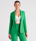 Make bold style moves in this trendy-chic woven blazer. It features a lapel collar. shoulder pads. long sleeves. a single-button closure. and a fitted silhouette. The smooth crepe fabric includes a woven lining. Style with the matching shorts and a sleek envelope clutch.