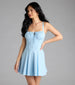 Make a bold impression in this corset linen skater dress all season long! The sweetheart neckline with a bust tie and adjustable straps provides a flattering fit while the flexible boning supports your shape. The strappy lace-up back adds a touch of playfulness to the skater silhouette and short-length hem. Complete the look in wedge sandals and a handbag.