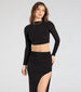 A bold long sleeve crop top that'll be a staple in your weekly lineup! Style it with the matching midi skirt to complete the look.